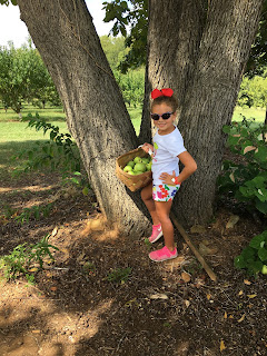 It's unfortunate that the only orchard close to us is becoming so popular that their crops are being over picked. We spent at least 10 minutes just looking for a tree that still had apples. Finally we found a row but all that was left were Granny Smith apples. That won't work for making pies without buying another variety at the supermarket. So this may be our last year visiting this spot and next year we just might have to head to the mountains. This is such a favorite tradition for our little family that I hate for it to end. Time to research the next closest spot.